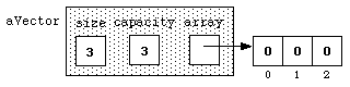 vector<int> aVector(3);defines aVector as an object capable of storing three int values, and initializes each element to zero. We can visualize such an object as follows: