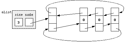 listpreallocates a sequence of three linked nodes, which can be anywhere in a program's free store of memory:aList(3);