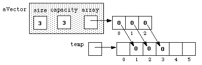 vector<int> aVector(n);If we consider the case where n is 3, we can visualize the situation as follows: