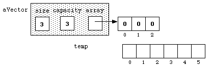 vector<int> aVector(n);If we consider the case where n is 3, we can visualize the situation as follows:
