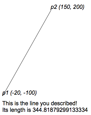 show the values of the coordinates and the length of the line.