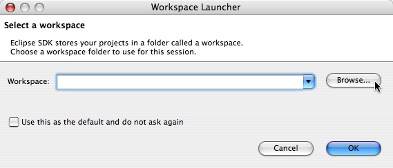 Eclipse likes to store all of the program files you generate in a single folder called your workspace. So when you launch Eclipse, it will ask you what folder you want to use for your workspace:
