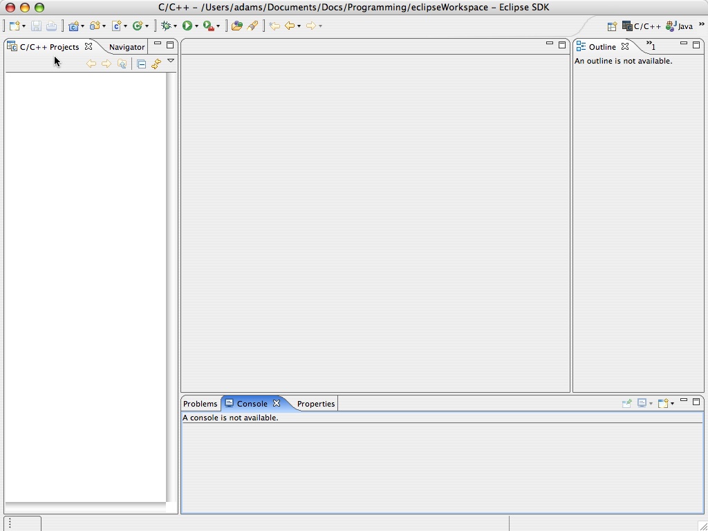 Once you have selected the C/C++ perspective, Eclipse will update its appearance something like that shown below: