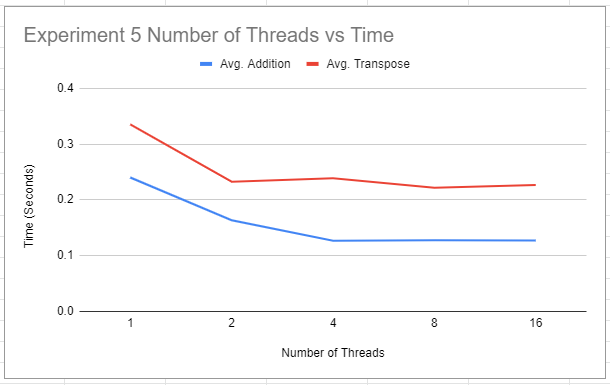 Make the same change to the transpose operation; then rebuild and rerun the program, and record your times. Do you see any improvement in the addition method? What about transpose()? How do they compare to your original (sequential) times?