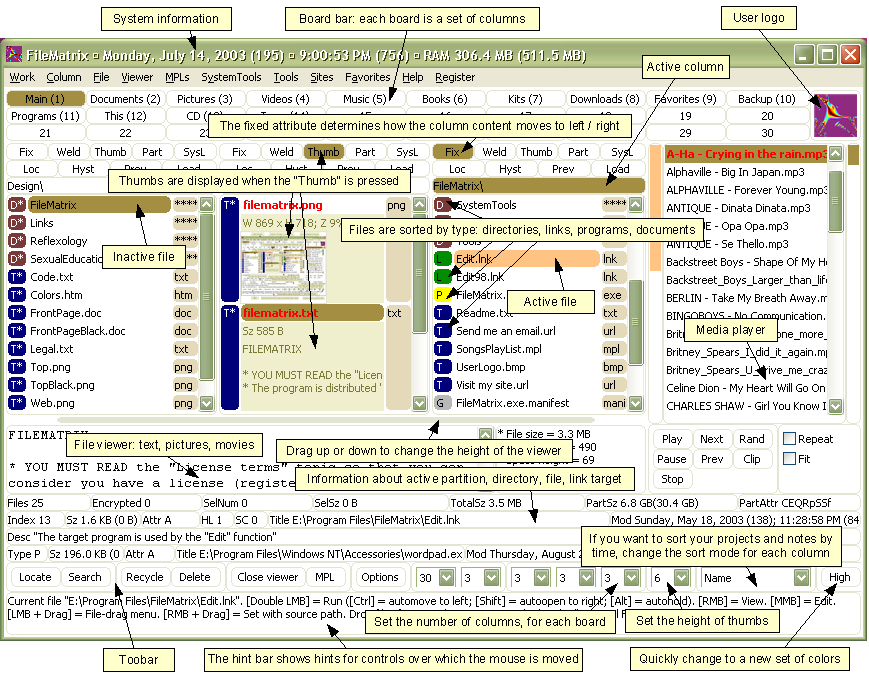 Here’s a counterexample to illustrate. This is a program called FileMatrix. We have no idea what it does, but it seems to do it all. The complexity of this interface actually interferes with a lot of our usability goals: it’s less learnable (because there are so many things you have to learn), less efficient (because cramming all the functions into the window means that each button is tiny), and less safe (because so many things look alike, hence description slips are easy).