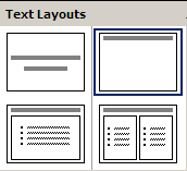 PowerPoint’s Text Layouts menu shows both reduction (minimalist icons representing each layout) and regularity. Titles and bullet lists are shown the same way.