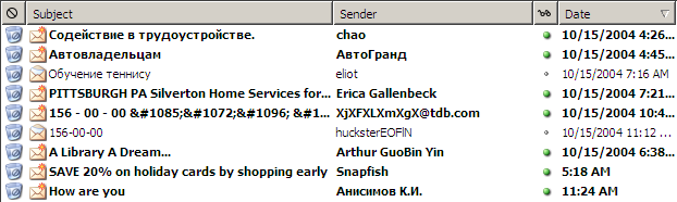 Let’s look at an email inbox to see how data associated with email messages are encoded into visual variables in the display. Here are the data fields shown in the inbox, in columns from left to right: