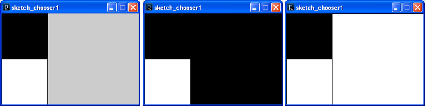 method.Selection can also be used to implement choice in mouse-click-based user interfaces. The following example fills in the large box on the right with the color the user chooses by clicking on one of the boxes on the left.