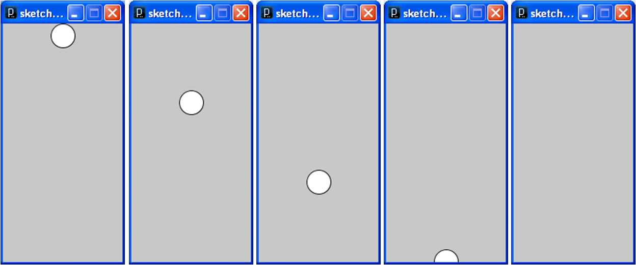 y += velocity; velocity += gravity; if ((y + ballRadius) > height) velocity *= -1; if ((y-ballRadius) < 0) noLoop();