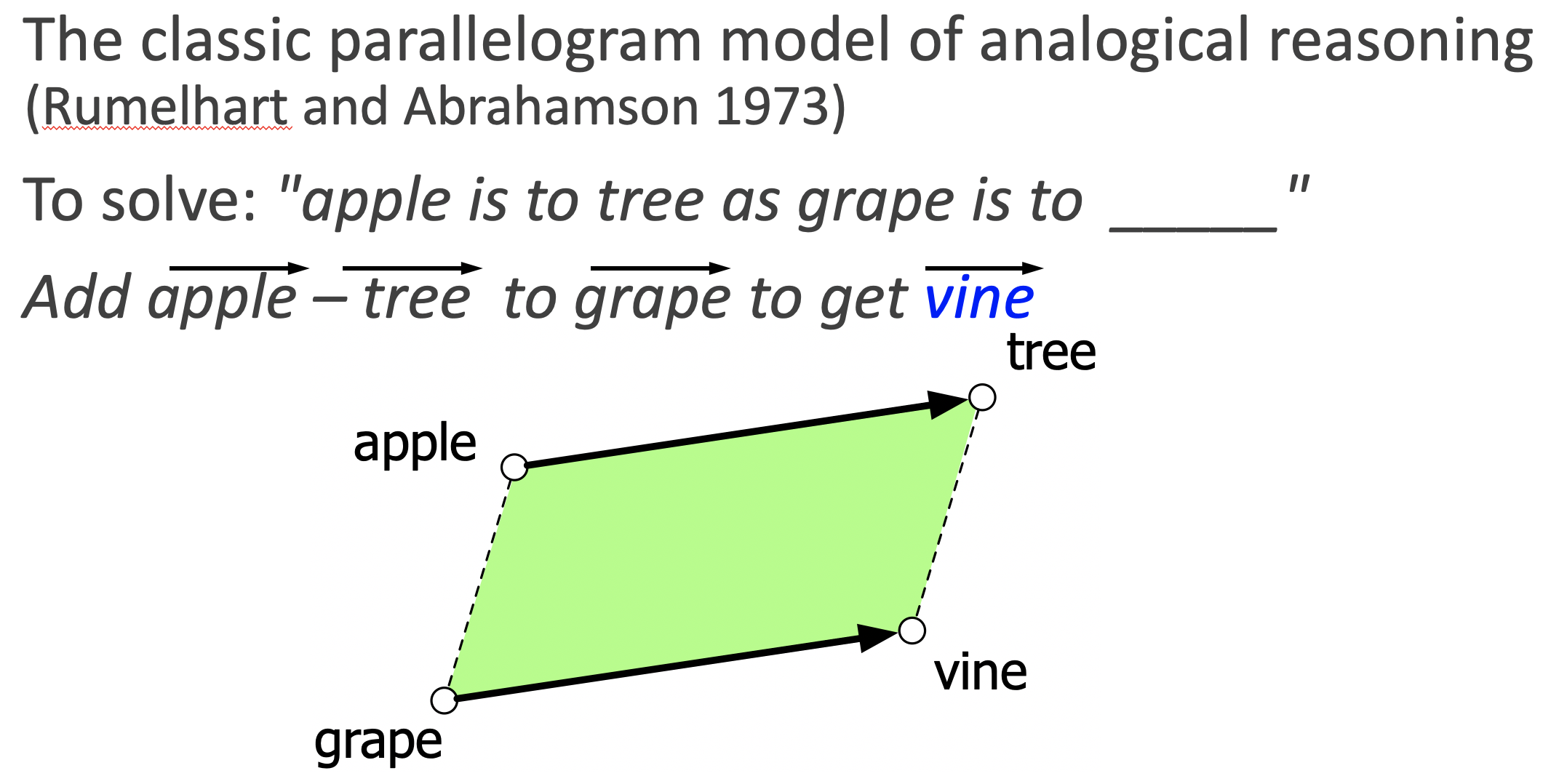 class: center, middle, inverse, title-slide # Embeddings ### Ken Arnold ### 2021-03-31 --- ## Objectives .pull-left[ Review: * What data do recommender systems work with? * What outputs do recommender systems produce? * What are the core ideas behind the collaborative filtering approach to recommender systems? ] .pull-right[ Today: * Identify what *embeddings* are. * Describe how embeddings address the problem of *high cardinality*. * Compare and contrast *item embeddings* (in recommender systems) and *word embeddings* (in language modeling). ] Write answers to the three questions on the left. -- Share your answers with a partner. --- class: center <img src="images/yt-candidate-generation-no-serving.png" width="70%" /> --- ## Which movies are similar? Intuition: represent a *movie* by its *genre vector*. | title | Star Wars (1977) | Contact (1997) | Fargo (1996) | Return of the Jedi (1983) | Liar Liar (1997) | English Patient, The (1996) | Scream (1996) | Toy Story (1995) | Air Force One (1997) | Independence Day (ID4) (1996) | |------------|-----------------|---------------|-------------|--------------------------|-----------------|----------------------------|--------------|-----------------|---------------------|------------------------------| | Action | 1 | 0 | 0 | 1 | 0 | 0 | 0 | 0 | 1 | 1 | | Adventure | 1 | 0 | 0 | 1 | 0 | 0 | 0 | 0 | 0 | 0 | | Animation | 0 | 0 | 0 | 0 | 0 | 0 | 0 | 1 | 0 | 0 | | Children's | 0 | 0 | 0 | 0 | 0 | 0 | 0 | 1 | 0 | 0 | | Comedy | 0 | 0 | 0 | 0 | 1 | 0 | 0 | 1 | 0 | 0 | | Crime | 0 | 0 | 1 | 0 | 0 | 0 | 0 | 0 | 0 | 0 | | Documentary | 0 | 0 | 0 | 0 | 0 | 0 | 0 | 0 | 0 | 0 | | Drama | 0 | 1 | 1 | 0 | 0 | 1 | 0 | 0 | 0 | 0 | | Fantasy | 0 | 0 | 0 | 0 | 0 | 0 | 0 | 0 | 0 | 0 | | Film-Noir | 0 | 0 | 0 | 0 | 0 | 0 | 0 | 0 | 0 | 0 | | Horror | 0 | 0 | 0 | 0 | 0 | 0 | 1 | 0 | 0 | 0 | | Musical | 0 | 0 | 0 | 0 | 0 | 0 | 0 | 0 | 0 | 0 | | Mystery | 0 | 0 | 0 | 0 | 0 | 0 | 0 | 0 | 0 | 0 | | Romance | 1 | 0 | 0 | 1 | 0 | 1 | 0 | 0 | 0 | 0 | | Sci-Fi | 1 | 1 | 0 | 1 | 0 | 0 | 0 | 0 | 0 | 1 | | Thriller | 0 | 0 | 1 | 0 | 0 | 0 | 1 | 0 | 1 | 0 | | War | 1 | 0 | 0 | 1 | 0 | 1 | 0 | 0 | 0 | 1 | | Western | 0 | 0 | 0 | 0 | 0 | 0 | 0 | 0 | 0 | 0 | ??? ``` from fastai.collab import * from fastai.tabular.all import * path = untar_data(URLs.ML_100k) ratings = pd.read_csv(path/'u.data', delimiter='\t', header=None, names=['user','movie','rating','timestamp']) # Use the full set of column names from `path/"README"`. column_names = ["movie", "title", "release date", "video release date", "IMDb URL", "unknown", "Action", "Adventure", "Animation", "Children's", "Comedy", "Crime", "Documentary", "Drama", "Fantasy", "Film-Noir", "Horror", "Musical", "Mystery", "Romance", "Sci-Fi", "Thriller", "War", "Western"] movies = pd.read_csv(path/'u.item', delimiter='|', encoding='latin-1', names=column_names, header=None) with_rating_count = movies.merge(ratings.groupby('movie').rating.count().to_frame('num_ratings').reset_index()).sort_values('num_ratings', ascending=False) print(with_rating_count[['title'] + column_names[6:]].iloc[:10].T.to_markdown()) ``` --- ## Genre vectors are *embeddings* (but not great ones) * A *vector* for each *thing* * Typically *tens* or *hundreds* of numbers * Typically *trained* so that *similarity* is meaningful. --- ## How do embeddings measure similarity? * Two movies are *similar* if their *genre vectors* are "nearby". * e.g., "Star Wars (A New Hope)" and "Return of the Jedi" share 5 genres with each other * ... 3 with "Independence Day" * ... and 0 with "Toy Story" Can you think of a math operation that would give us the number of genres in common? * Perhaps from *linear algebra*? -- * Multiply pairs of numbers. (Each genre shared by two movies gets a 1; otherwise 0.) Then sum. -- * aka, the **dot product**. -- * sometimes *normalize by vector magnitude* (giving "cosine similarity") --- ## Learn by Gradient Descent * Imagine you know the "genre" of each video. * Use data to determine which genres each user likes. -- * But some videos lack genre information. So look at *which users liked them* -- * Turns out we don't need *any* prior genre information; just initialize randomly. --- class: center, middle ## How do embeddings solve high cardinality? -- Work with tens of numbers instead of tens of thousands of movies. --- ## Extension: Word Embeddings Task: given a single word, predict the next word * "red lentil chili recipe" * "red lentil curry recipe" * "chickpea chili recipe" * "chickpea" \_\_\_ What will you predict? How? <br> -- | word | lentil | chickpea | recipe | dish | red | yellow | chili | curry | |---|---|---|---| | is an ingredient | 1 | 1 | 0 | 0 | 0 | 0| 0 | 0 | | is a legume | 1 | 1 | 0 | 0 | 0 | 0| 0 | 0 | | is a color | 0 | 0 | 0 | 0 | 1 | 1 | 0 | 0 | | is information | 0 | 0 | 1 | 0 | 0 | 0 | 0 | 0 | | described by an ingredient | 0 | 0 | 1 | 1 | 0 | 0 | 1 | 1 | --- ## Where do those embeddings come from? **Option A**: hire an army of linguists (and food experts etc.) -- **Option B**: learn it from data. * "The meaning of a word is its use in the language" - Wittgenstein * "You know a word by the company it keeps" - [John Firth](https://en.wikipedia.org/wiki/John_Rupert_Firth), 1950's linguist --- <!-- --> .floating-source[Source: Jurafsky and Martin. [Speech and Language Processing 3rd ed](https://web.stanford.edu/~jurafsky/slp3/)] --- .pull-left[ <img src="images/comparative_superlative.jpg" width="100%" /> ] .pull-right[ <img src="images/man_woman.jpg" width="100%" /> ] See also: [Word embeddings quantify 100 years of gender and ethnic stereotypes](https://www.pnas.org/content/115/16/E3635) (Garg et al, PNAS 2018) .floating-source[Source: [GloVe project](https://nlp.stanford.edu/projects/glove/)] --- ## How does word2vec work? <img src="images/slp3-skipgram.png" width="100%" /> --- ## Further Reading * [Deep Neural Networks for YouTube Recommendations](https://research.google.com/pubs/pub45530.html), Covington et al, RecSys ’16. * 