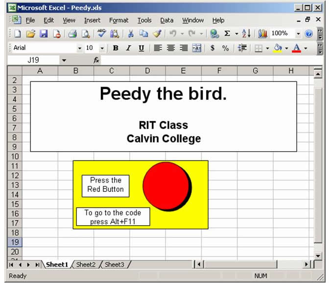 In this lab we'll explore the concept of programming using Peedy, a simple Microsoft agent. Our Peedy application is written in Visual Basic for Applications (VBA) and runs within Microsoft Excel. Programming is a large and significant topic, but in this lab we'll focus on the fundamentals.